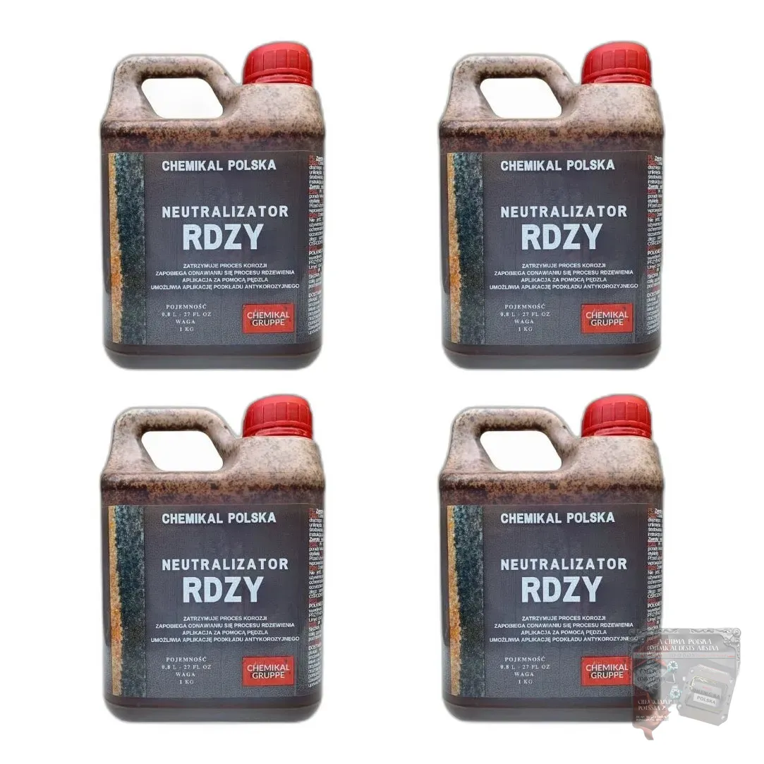 Skuteczny środek do neutralizacji rdzy na powierzchniach metalowych i betonowych. Zawiera kwas fosforowy o stężeniu 25%. Masa netto: 4 kg (1kg x 4 sztuki).